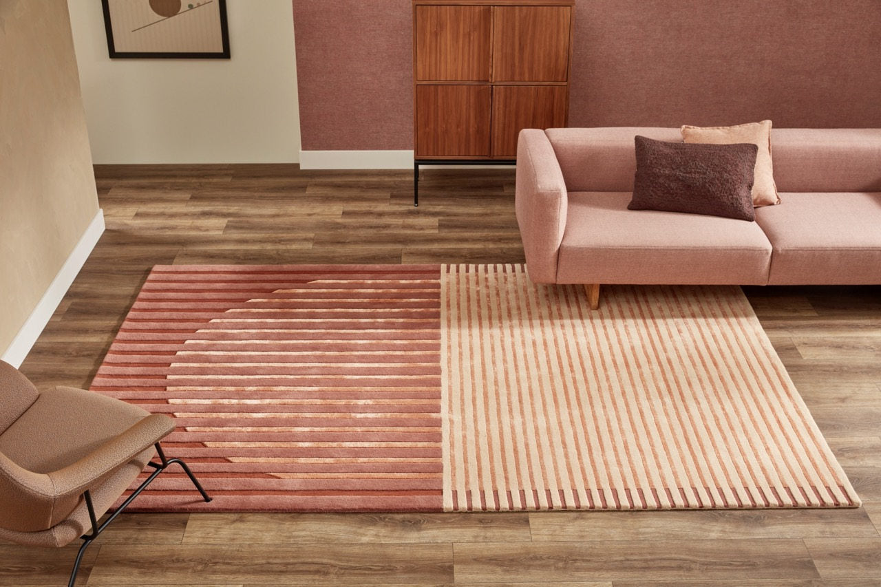 Transformez votre espace avec le tapis Brinker Carpets Fano Lychee, un mélange époustouflant de motifs géométriques et rayés qui améliore sans effort n'importe quelle salle à manger ou salon. Fabriqué en laine de haute qualité, ce chef-d'œuvre tufté à la main ajoute non seulement de la chaleur sous vos pieds, mais apporte également une touche d'élégance rétro-moderne à votre maison.