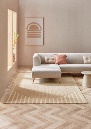 Imaginez la chaleur et l'élégance qu'il apporte à votre maison, avec un design géométrique et rayé chic qui complète les esthétiques scandinaves, rétro et modernes. Les tons beiges neutres offrent une polyvalence, vous permettant de l'intégrer facilement dans n'importe quel schéma de décoration.