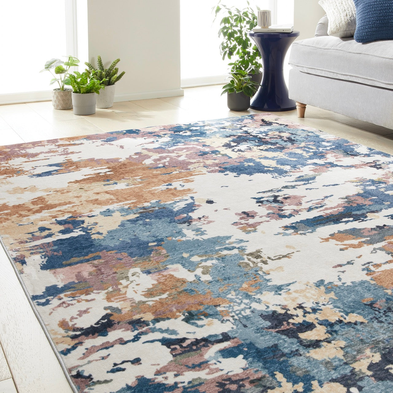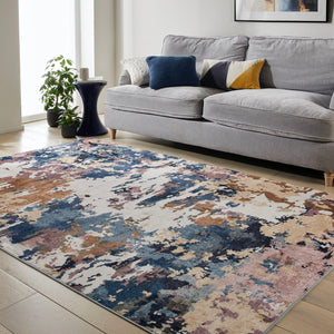 Le Liberty LIB110 Cobalt joue avec un mélange vibrant de bleu cobalt, d’ocre chaud et de rose poudré pour créer une composition abstraite qui dynamise instantanément la pièce. Les nuances se superposent comme des coups de pinceau larges, offrant un effet artistique tout en restant doux et équilibré. Léger et agréable au toucher, ce tapis apporte une touche moderne tout en conservant un confort subtil sous les pieds.
