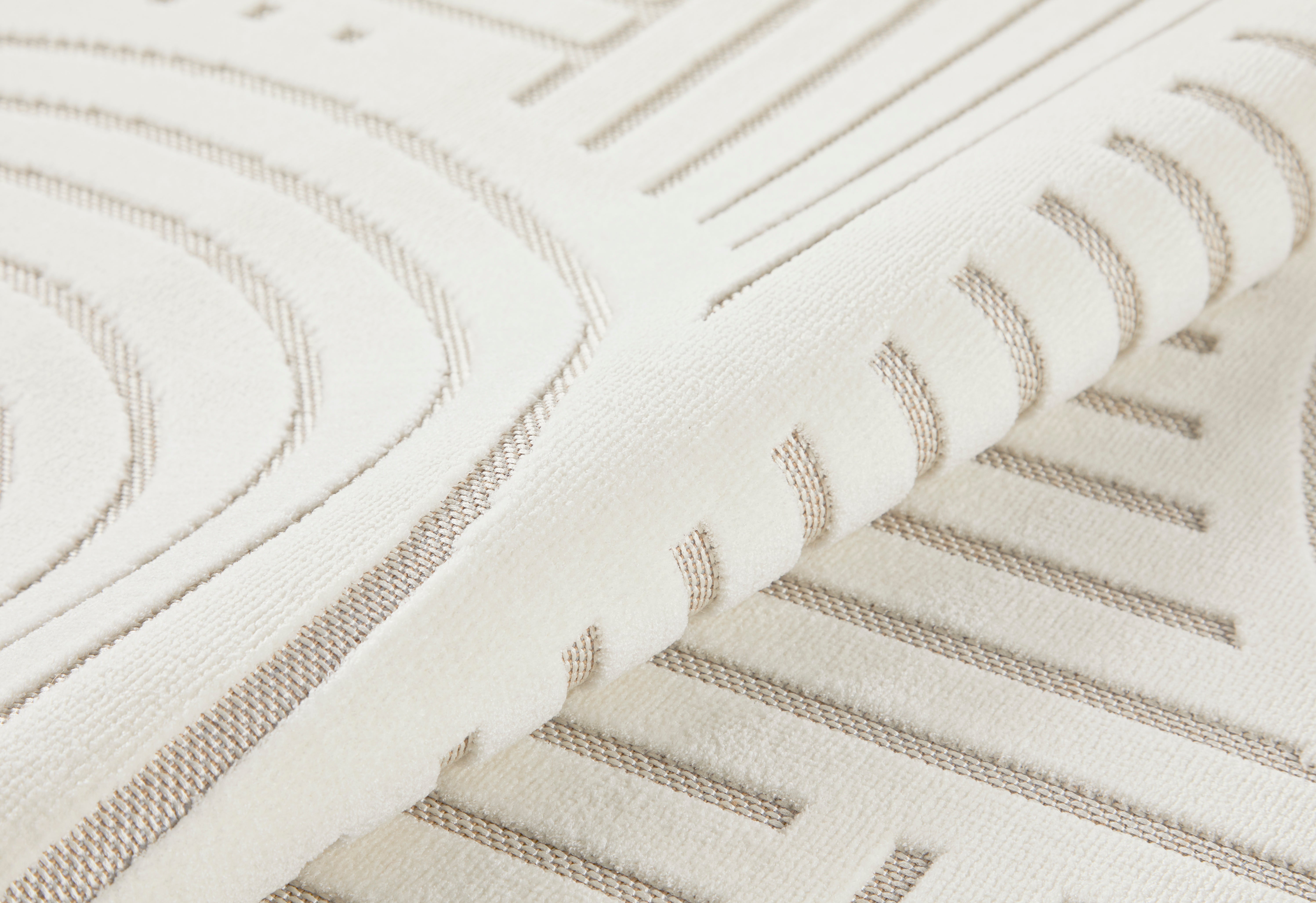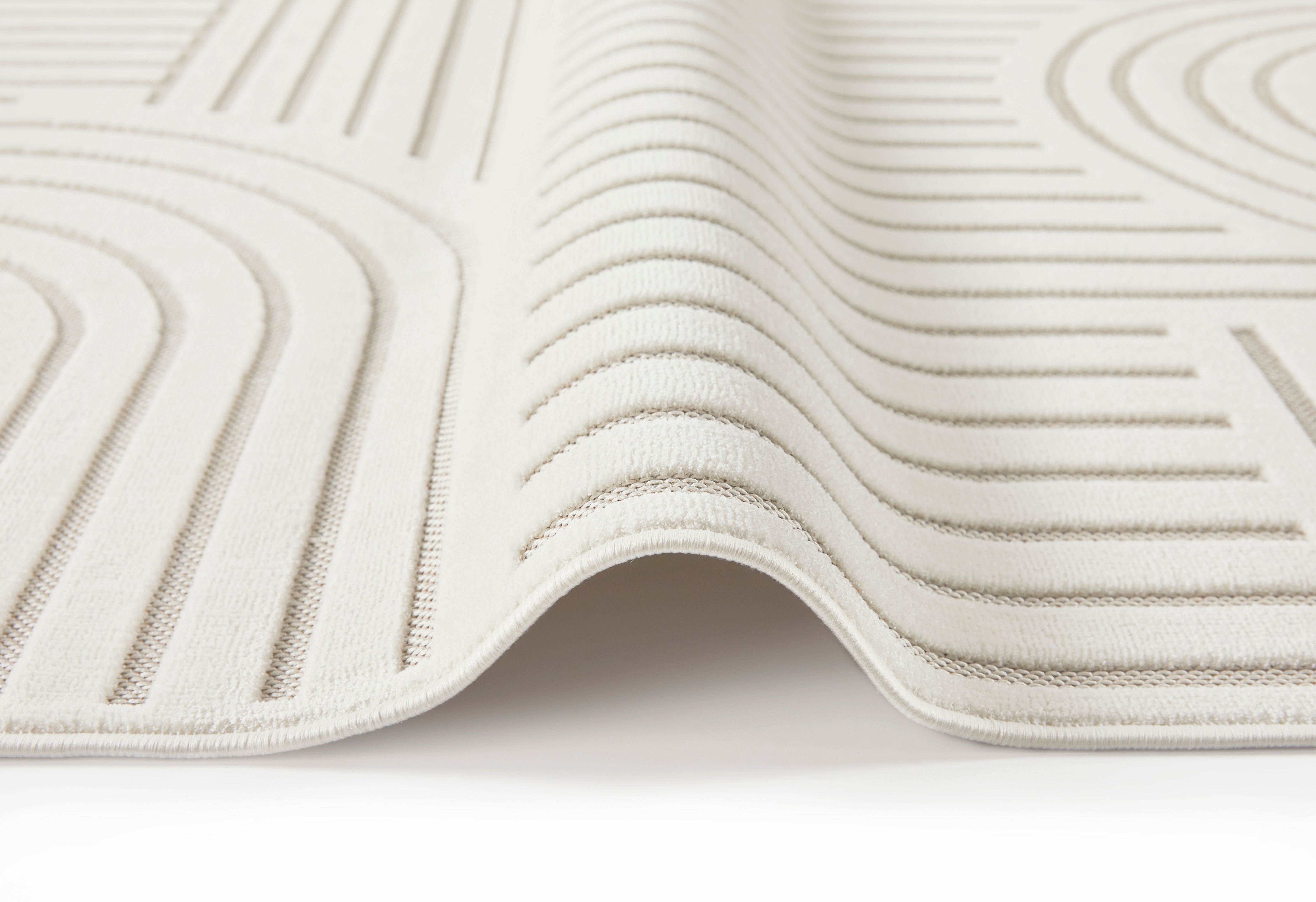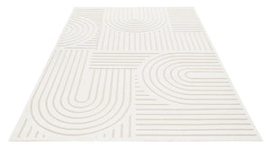 Imaginez-vous marcher sur une surface magnifiquement tissée qui combine des esthétiques scandinaves, rétro et modernes. Le design géométrique dans des tons ivoire élégants ajoute non seulement un intérêt visuel, mais complète également une variété de styles de décoration, du minimaliste à l'éclectique.