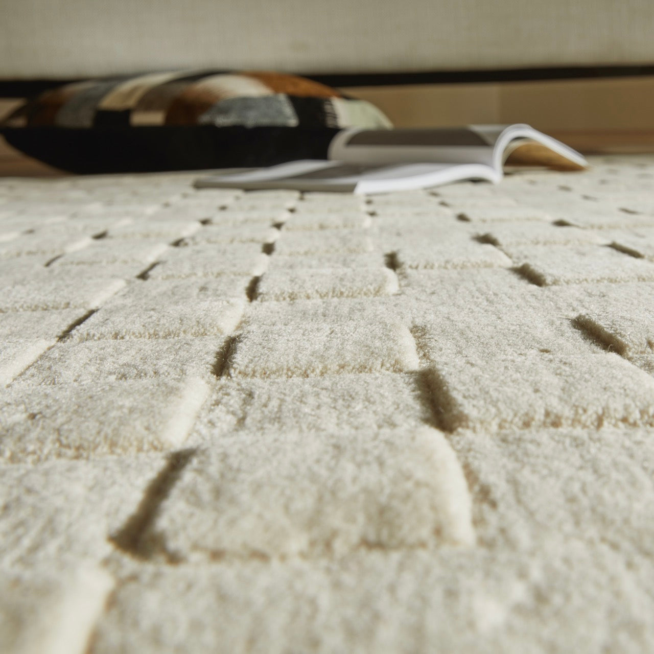 Fabriqué à la main en Inde à partir de laine de haute qualité, ce tapis présente un velours dense et compact. Il est agréable sous les pieds, tout en restant parfaitement adapté à un usage quotidien. Le léger travail de carving évite toute impression de surface plate et confère au tapis une élégance sobre et durable.