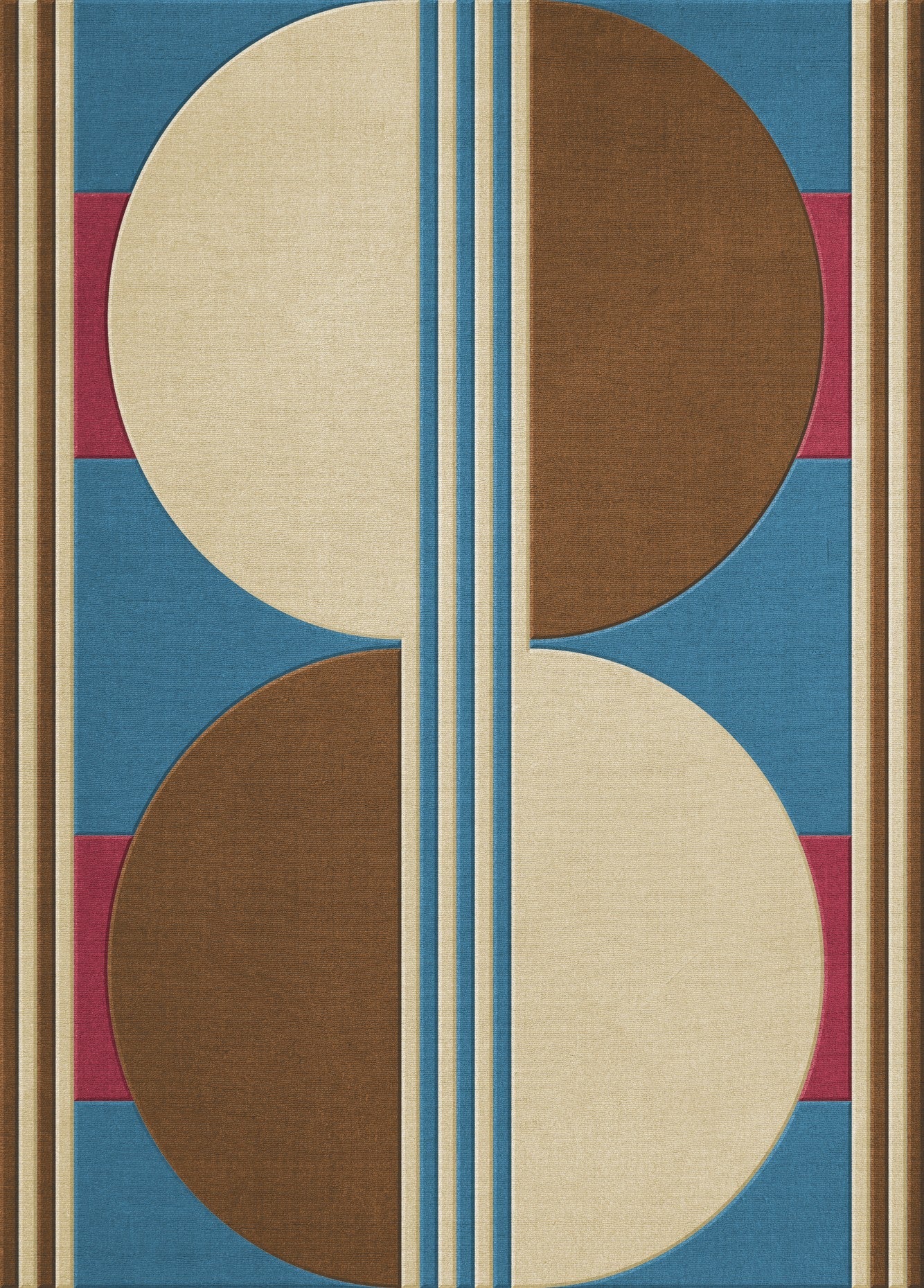 Le Layered Gio Mezza Confetto ressemble à une œuvre graphique posée au sol, mais avec cette sensation cosy qui rend un intérieur vivant. Les formes géométriques rappellent l’esprit rétro, tandis que les couleurs restent subtiles et faciles à intégrer. Un bleu doux, des bruns chaleureux, une base crème et une petite note rose confetto donnent un résultat à la fois original et très équilibré.