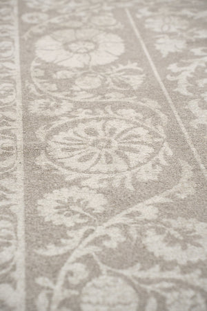Fabriqué en matériau PET durable, ce tapis est non seulement élégant mais aussi pratique. Sa construction en jacquard à tissage plat garantit sa longévité, le rendant idéal pour les zones à fort passage. La palette de couleurs taupe complète une variété de styles d'intérieur, du classique au vintage, vous permettant de créer un look cohérent dans votre maison.