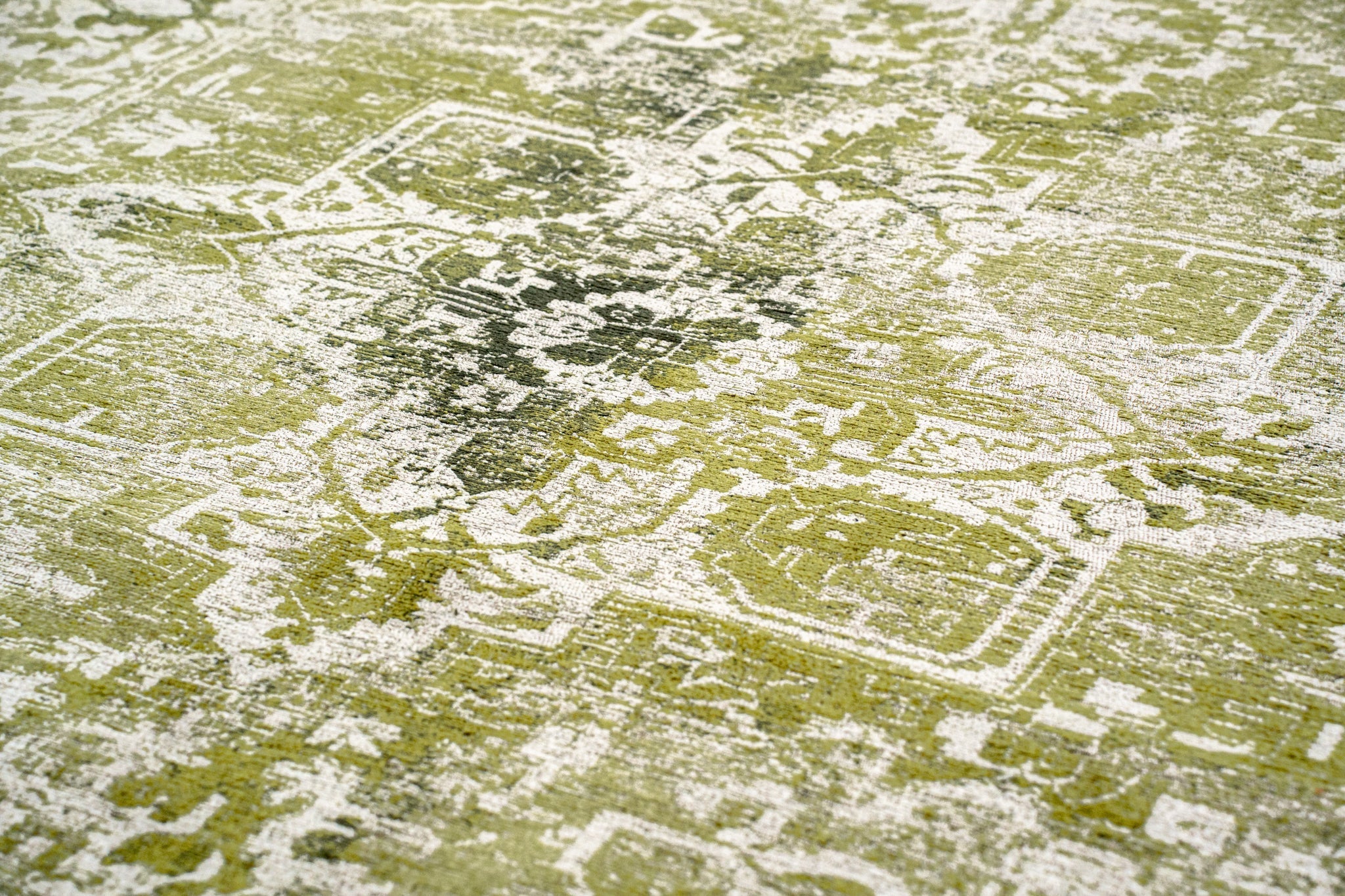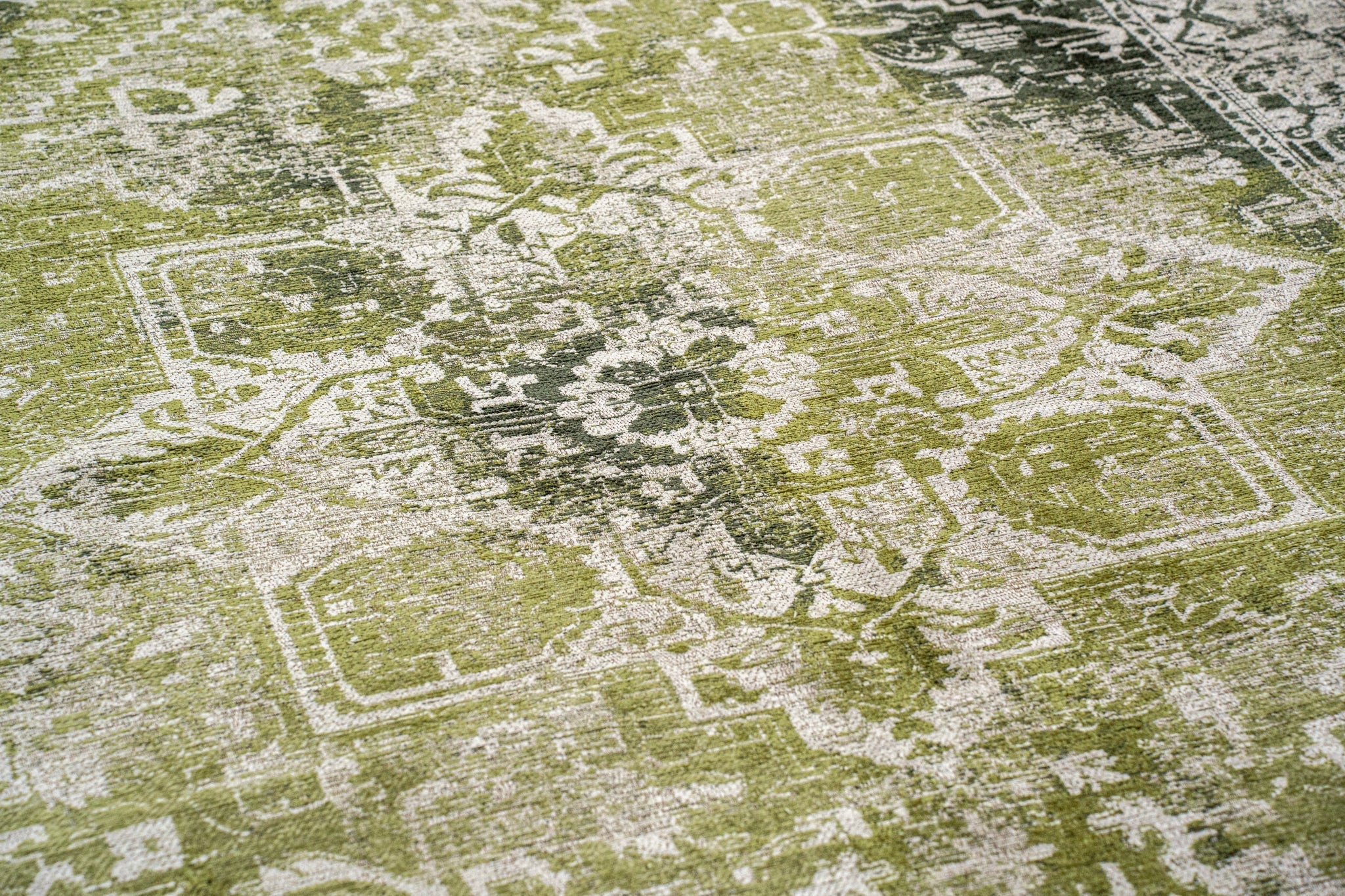 Fabriqué en Belgique, ce tapis présente un magnifique design de médaillon qui ajoute une touche de sophistication à votre décor. La riche teinte verte évoque un sentiment de tranquillité, se fondant harmonieusement avec diverses palettes de couleurs et styles.