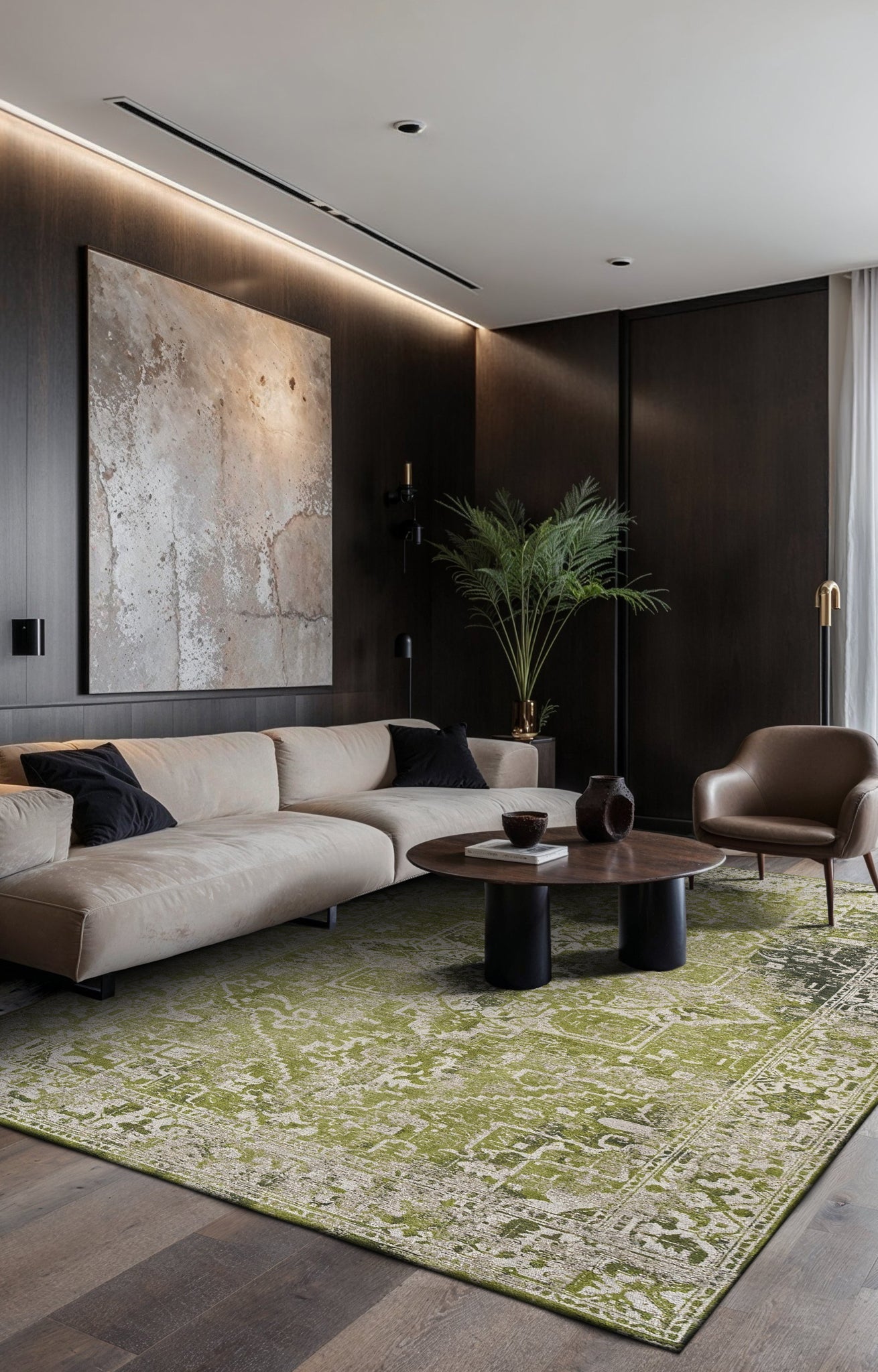 Élevez l'ambiance de votre maison avec un tapis qui incarne à la fois le charme vintage et la résilience contemporaine. Découvrez la parfaite fusion de style et de praticité avec l'Antiquarian Tabriz Olive Wood 9645.