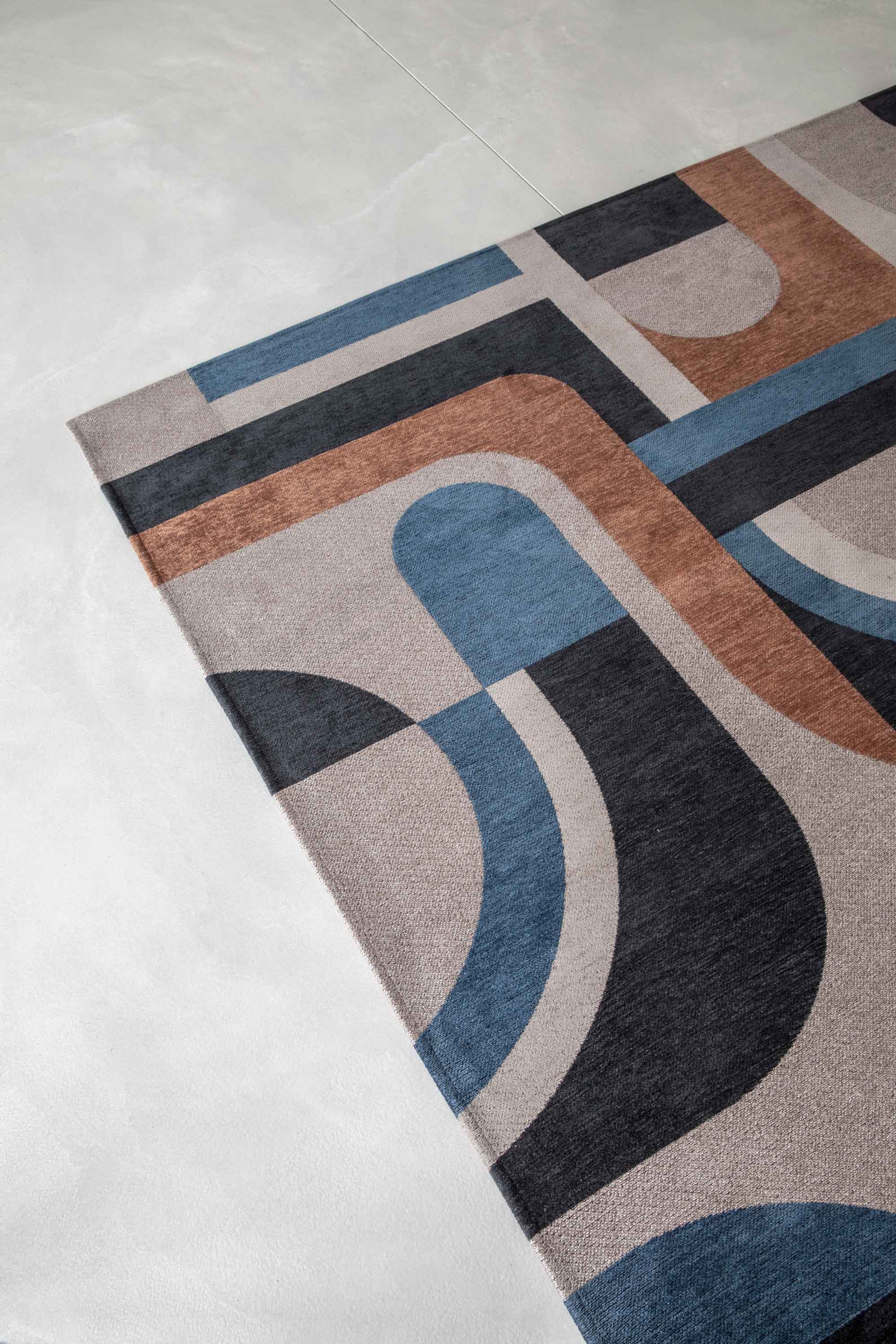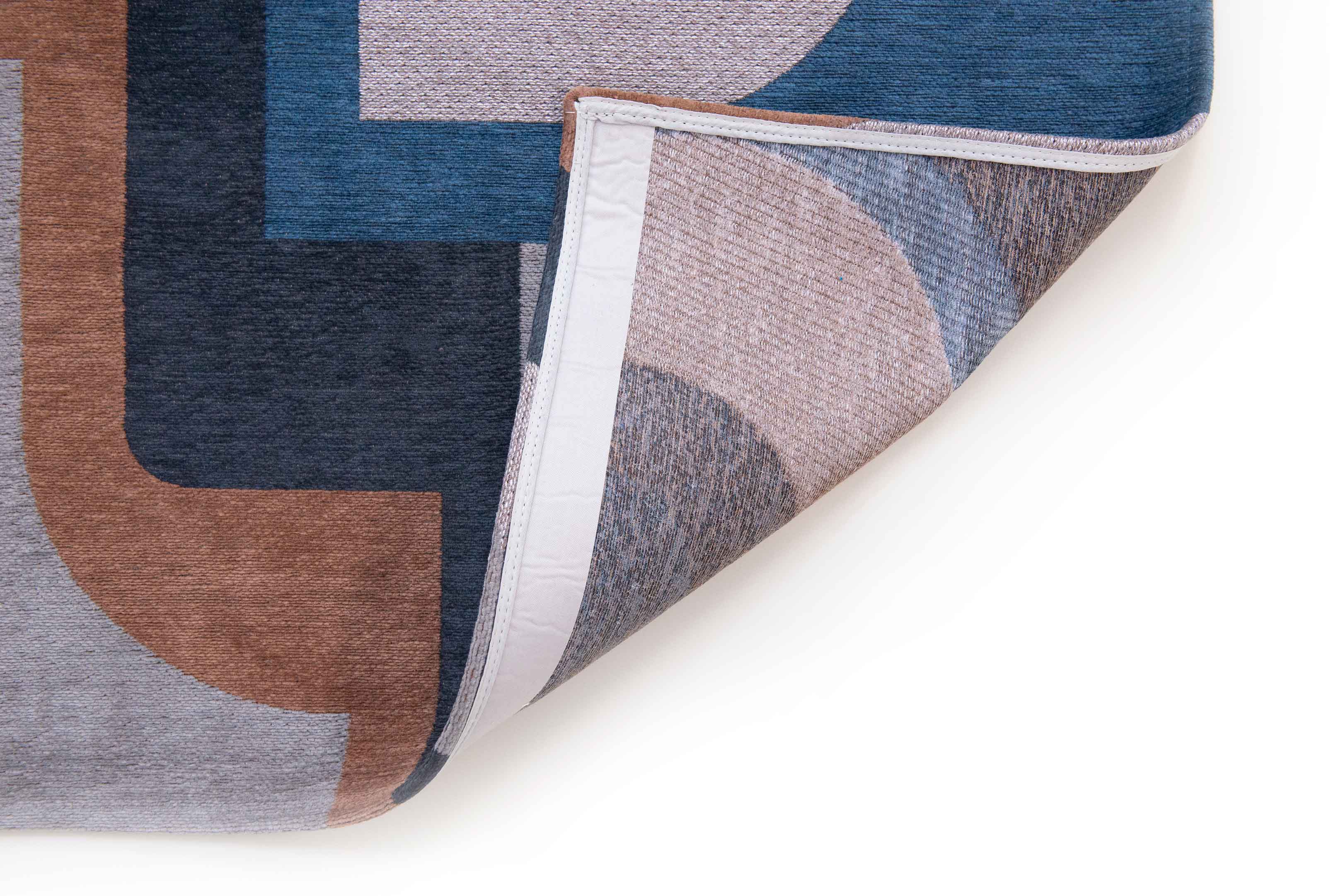 Les tons beiges apaisants associés à un bleu camel frappant créent une atmosphère calme, parfaite pour la détente ou pour recevoir des invités. Élevez l'esthétique de votre maison avec un tapis qui allie style et fonctionnalité, garantissant que votre espace soit accueillant et chic.
