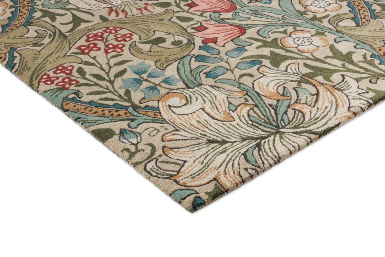 Transformez votre intérieur avec l'iconique tapis Golden Lily de Morris & Co. Ce design exquis présente le célèbre motif floral de William Morris dans de riches tons verts et rouges, apportant la beauté de la nature et l'héritage du mouvement Arts & Crafts dans votre maison.