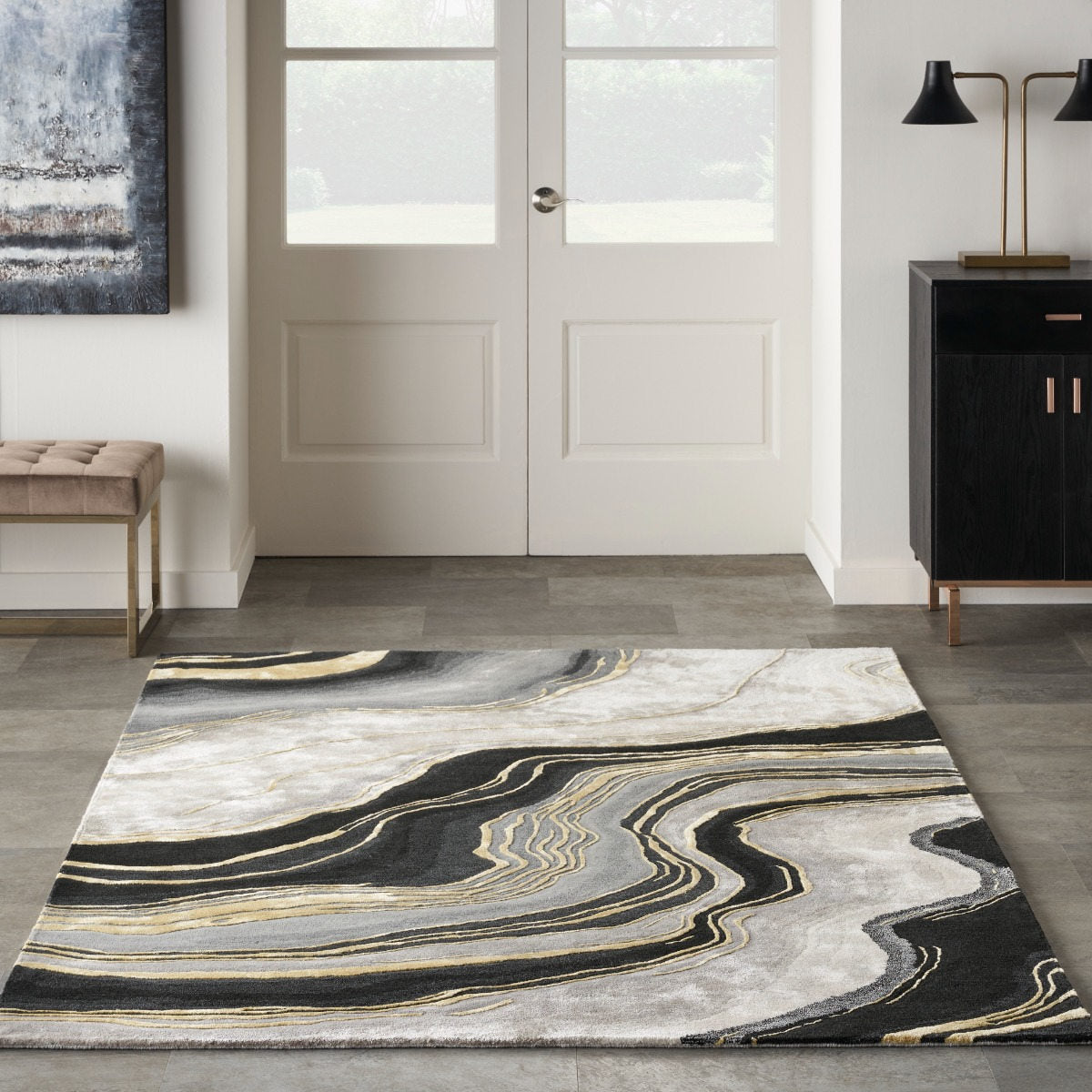 Imaginez enfoncer vos pieds dans ce chef-d'œuvre tufté à la main, où chaque pas ressemble à une douce étreinte. La riche teinte gris charbon améliore non seulement votre intérieur, mais cache également l'usure quotidienne, ce qui en fait un choix idéal pour les zones à fort passage.