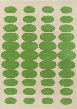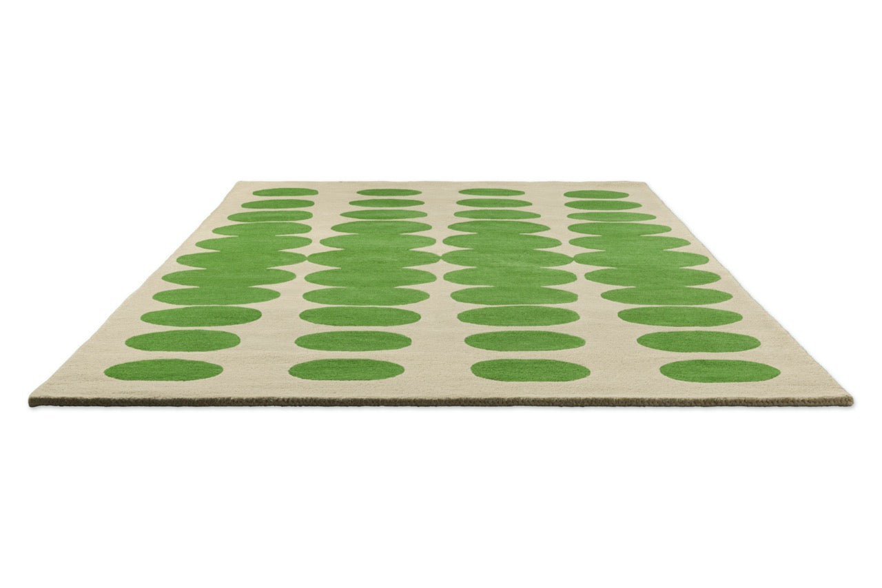 Le Optic Oval Green 157707 transforme le sol en véritable terrain graphique. Tufté main en Inde en laine 100 %, il associe des ovales verts profonds à un fond clair, pour un rendu énergique et raffiné.