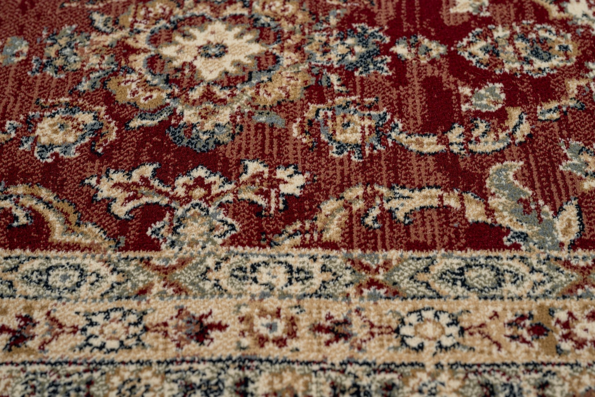 Présentation du Rugsman Classico 057.0461.1464, un chef-d'œuvre floral qui élève sans effort n'importe quel espace. Fabriqué en Belgique, ce tapis exquis est conçu pour rehausser votre salle à manger, votre salon ou votre chambre avec ses riches teintes rouges et son esthétique classique.