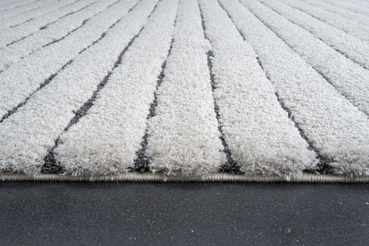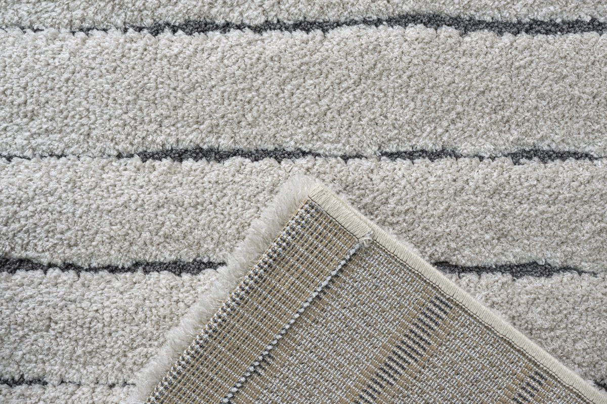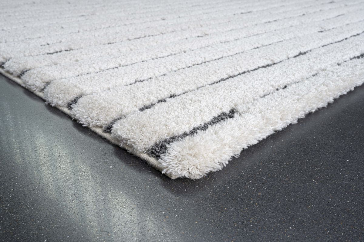 Imaginez enfoncer vos orteils dans la texture douce et accueillante tout en savourant une tasse de thé chaud. Le design moderne scandinave, avec ses élégantes rayures dans une teinte ivoire apaisante, complète sans effort toute décoration, ajoutant une touche de sophistication à votre maison.