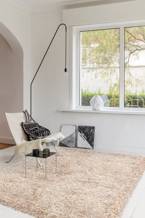 Ce tapis haut de gamme est fabriqué à partir d’un mélange de laine et polyester, qui lui confère à la fois la douceur d’une fibre naturelle et la résistance d’une fibre synthétique. Son poil long et shaggy crée une sensation de confort sous les pieds, idéale pour le salon ou la chambre.