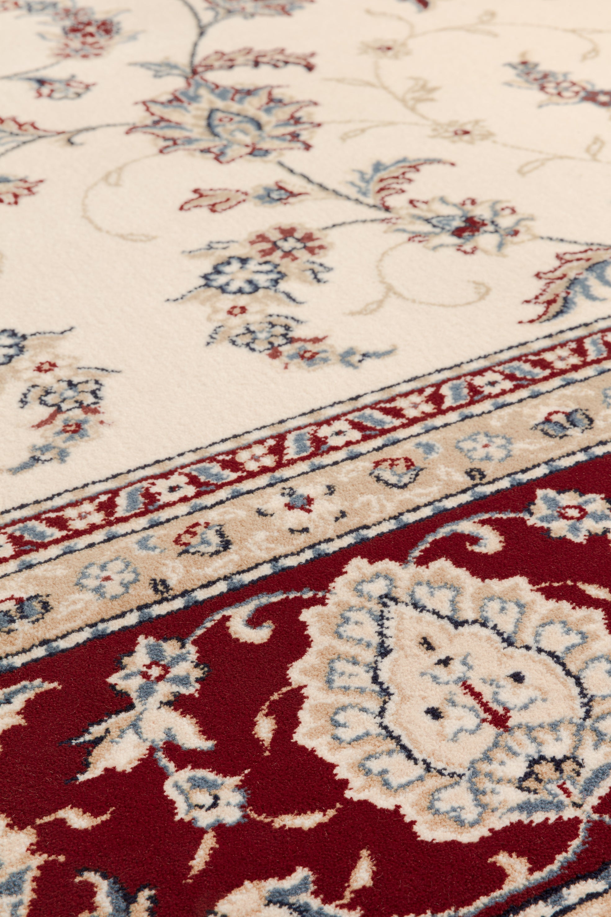 Le Royal Classic Diamond 7244.104 associe un fond beige clair à une bordure rouge chaleureuse et de délicats détails floraux. Sa composition équilibrée apporte l’élégance des tapis orientaux traditionnels dans une version plus légère et facile à intégrer.